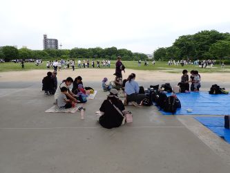 お昼はグループ毎に集まり、シートを敷いて、