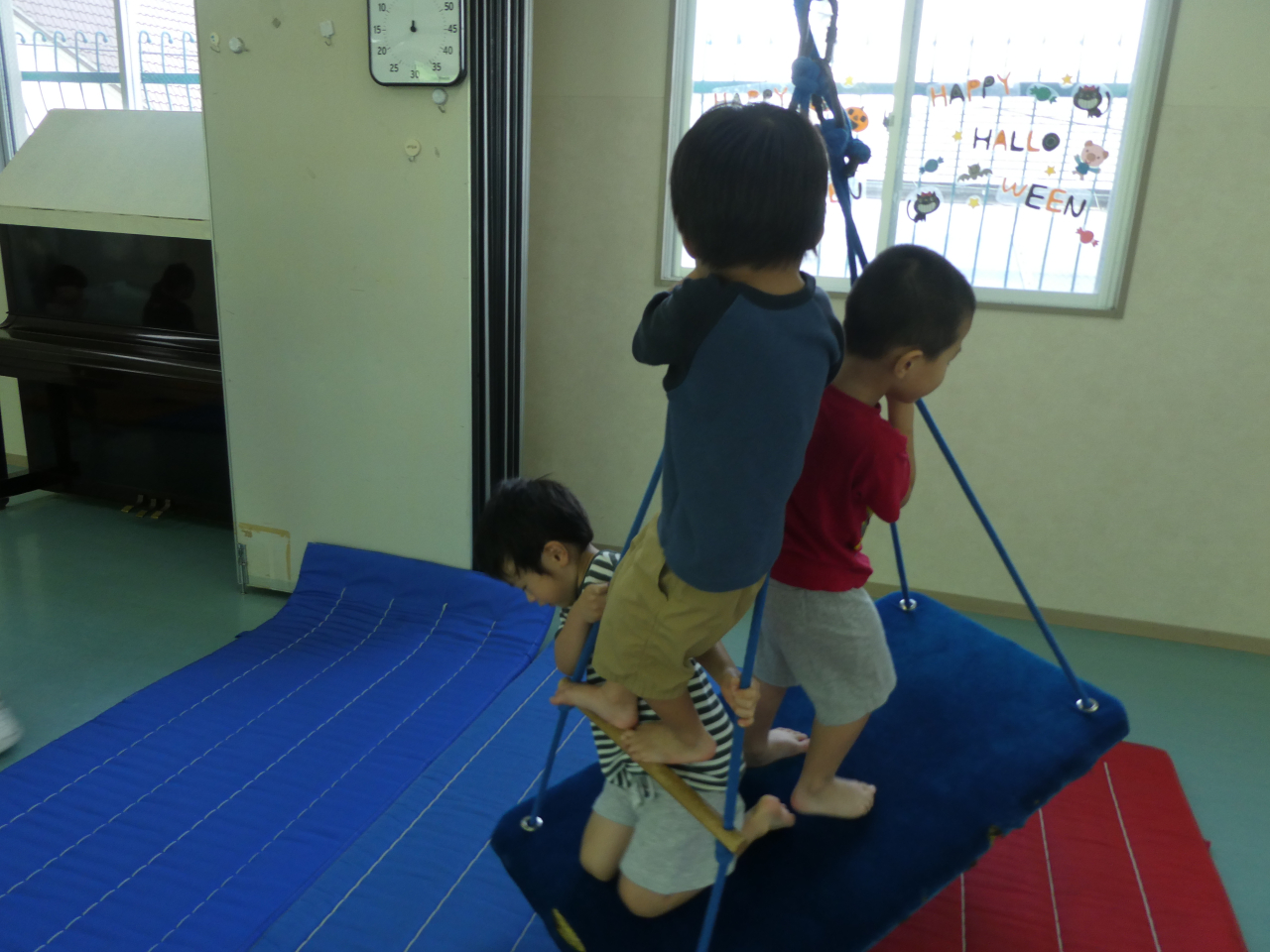 いろいろなブランコやスイングを吊ってあそびました