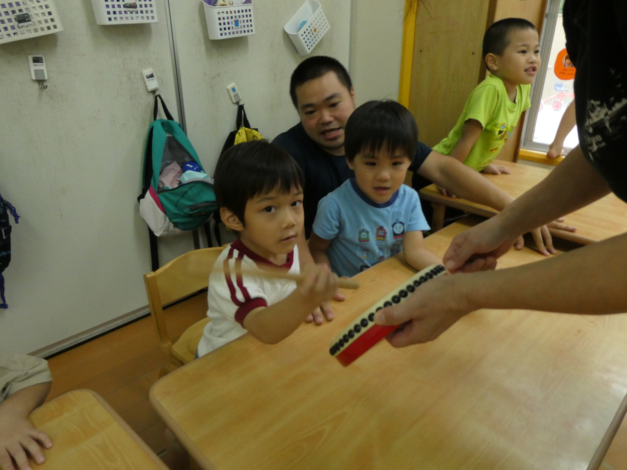 絵本を見たり、楽器を叩いたり