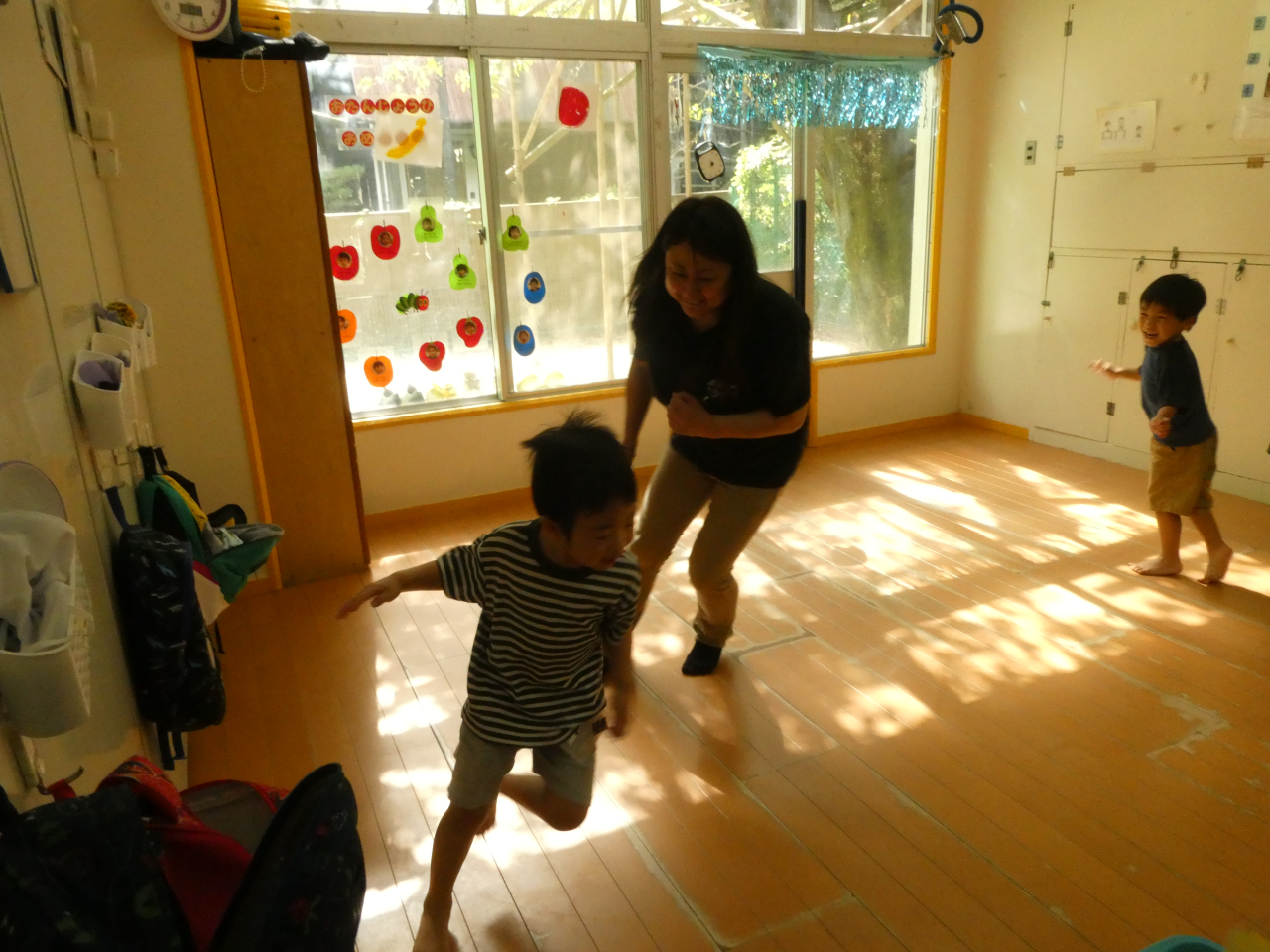 お部屋で先生と追いかけっこをしたり