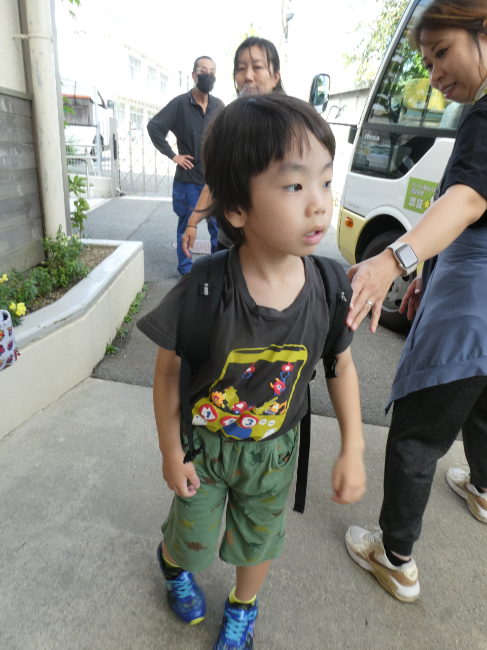 今日もバスとワゴンがやってきました