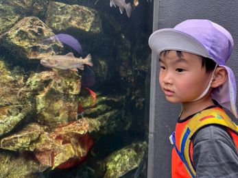 オオサンショウウオやアシカ,アザラシ,ペンギンなど好きなお魚や海の生き物を見て回りました。