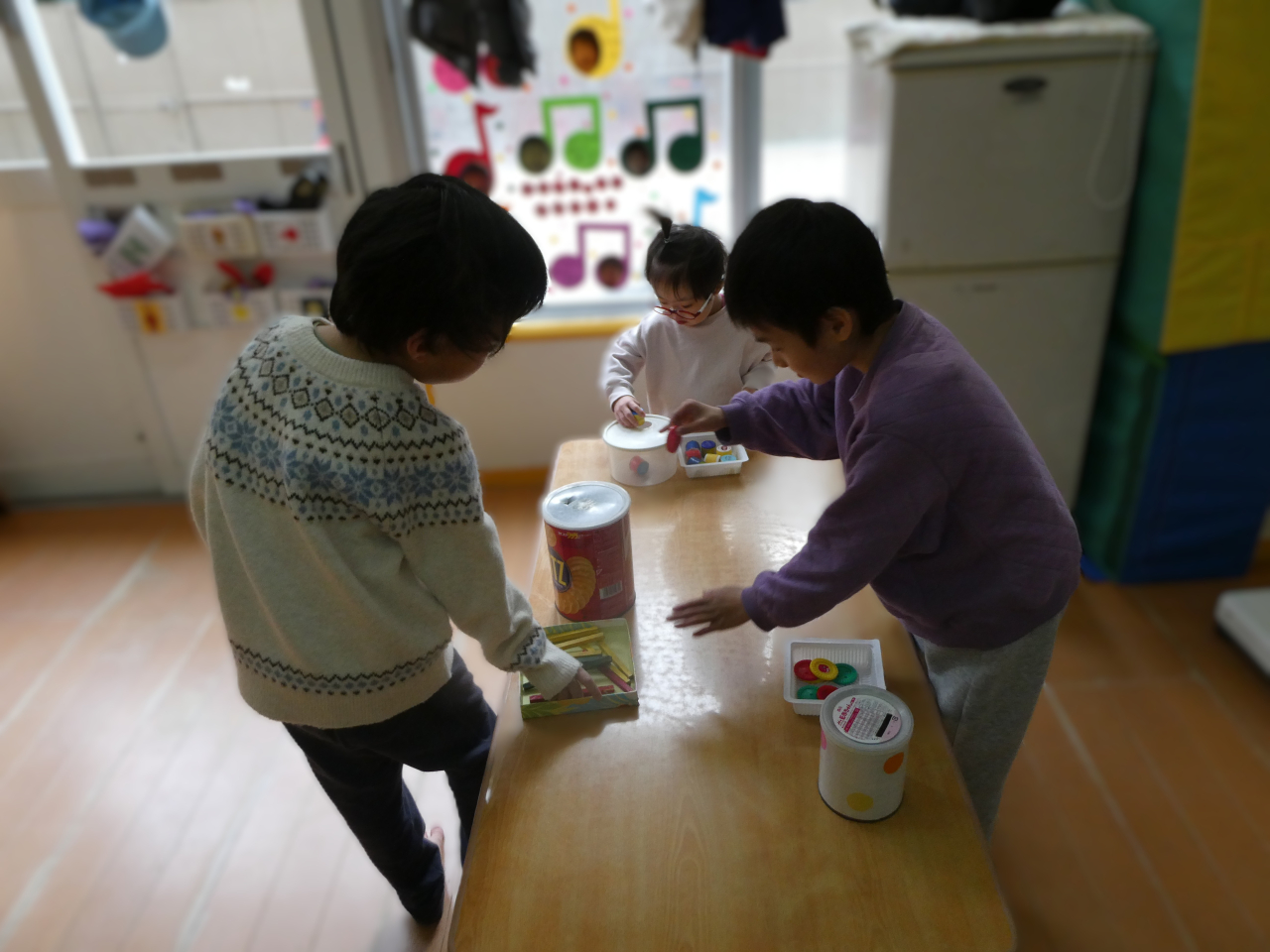 最近、プットインやコイン入れなど、指先を使うおもちゃが好きな子どもたちです