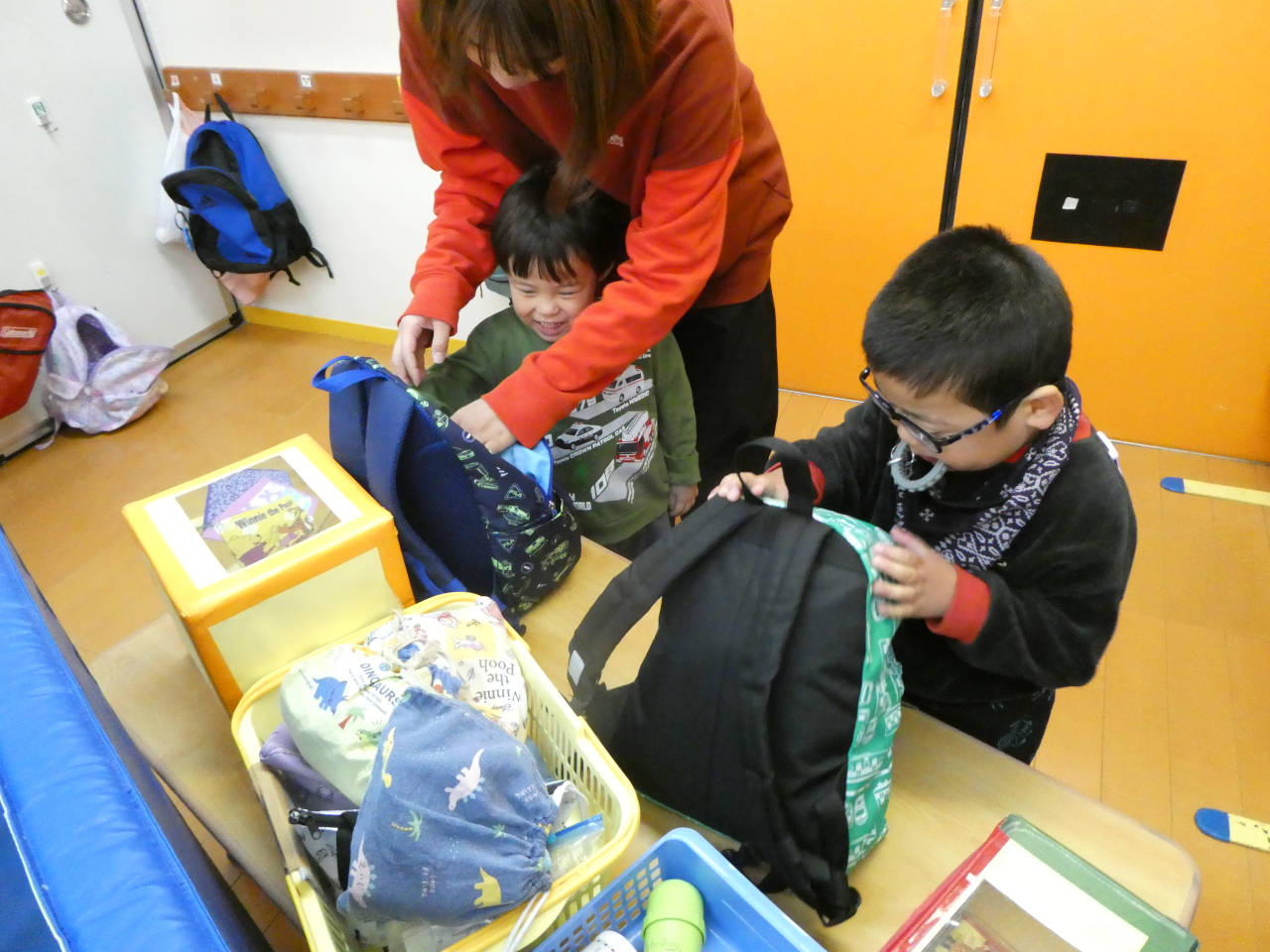 それぞれのやり方で鞄の中身の整理や片付けに向かいます