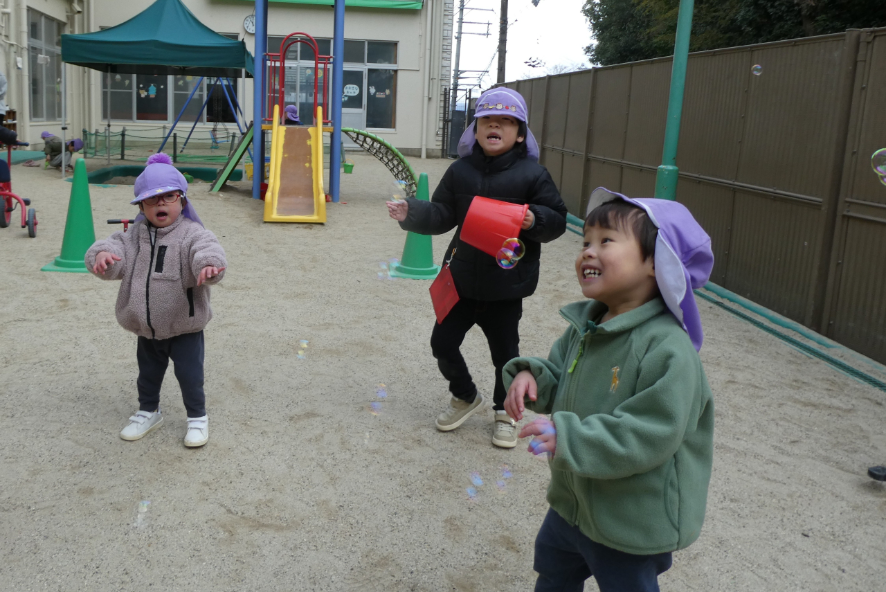 ブランコやシャボン玉、砂場など、好きなあそびにたっぷりと向かいました