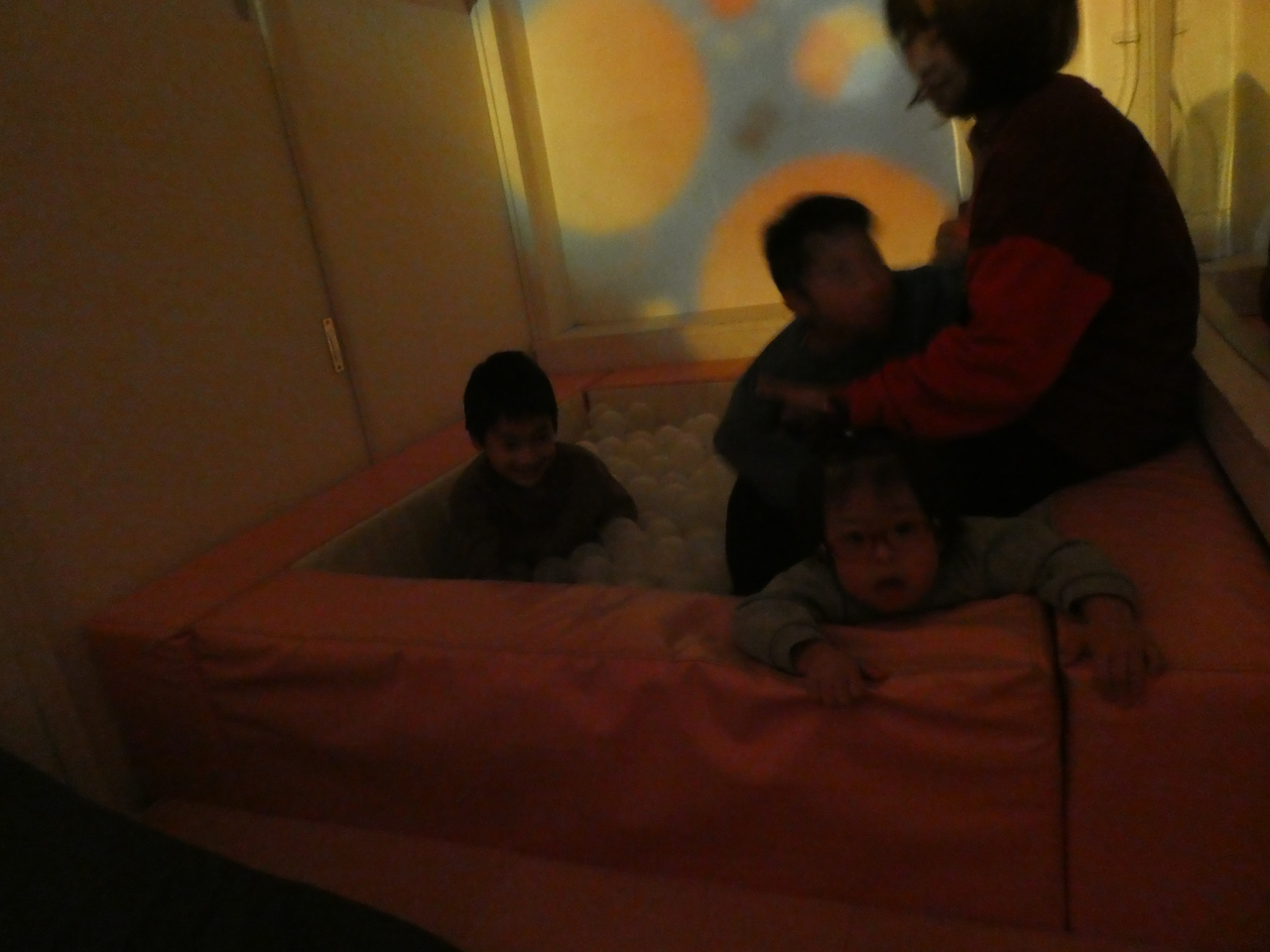 大きなお部屋で滑り台やトランポリンであそんだりもしましたよ