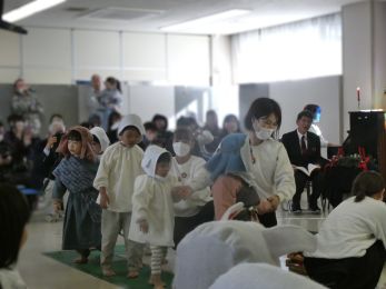 ページェントの後は職員が「ジングルベル」を歌ったり、サンタさんが登場しました。