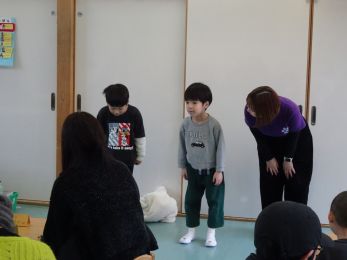 いつも通りお当番さんが前に出て朝の集まりをしました。
