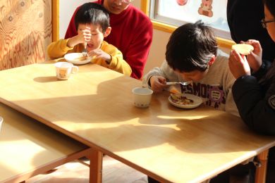 早く焼けないかな?と待ち遠しい様子で良いにおいがしてくるととってもうれしそうな子どもたち!みんなでおいしくいただきました!