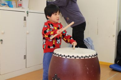 和太鼓ではお家の方に見守られながら順番に前に出て、思い思いに叩いてみせてくれました。