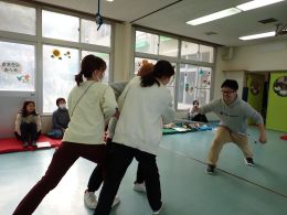 2月に警察官の方に来ていただき、不審者対応による職員の防犯研修を行いました。