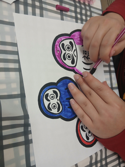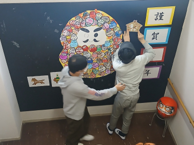 壁面に大きなだるまと謹賀新年の文字が並びました。