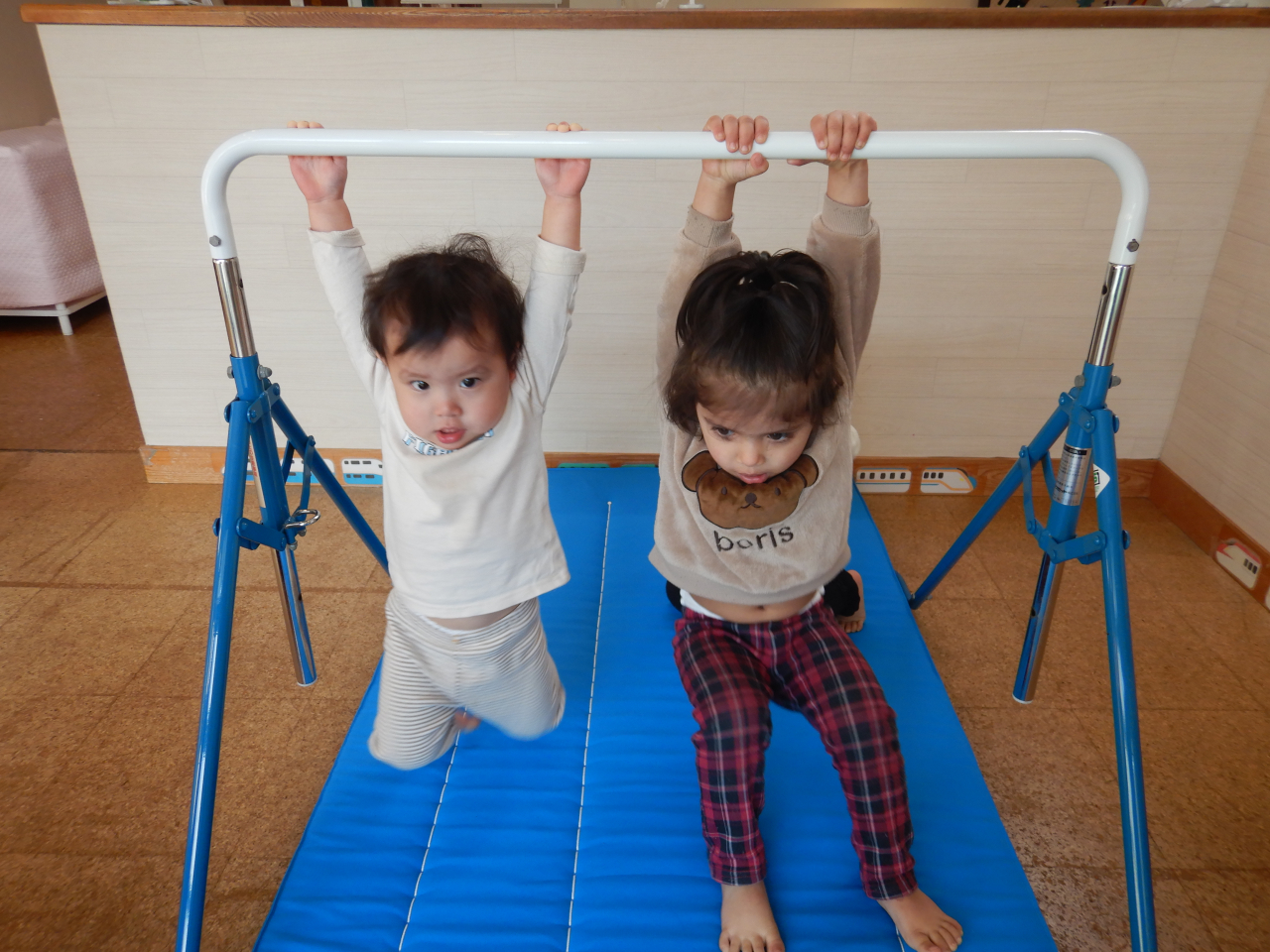 鉄棒では、腕の力でグッと自分の体を持ち上げて長い時間ぶら下がれるようにもなりました。