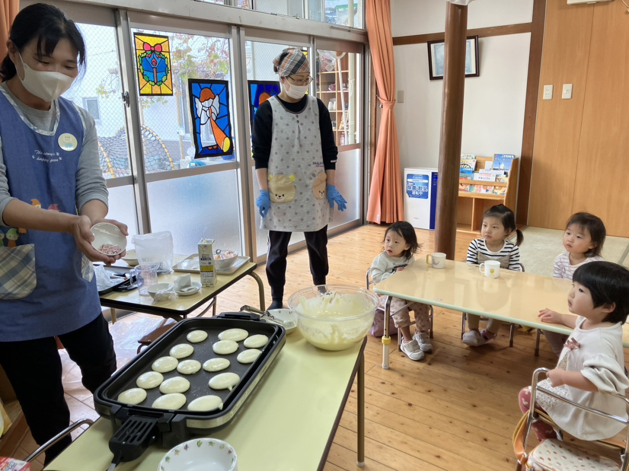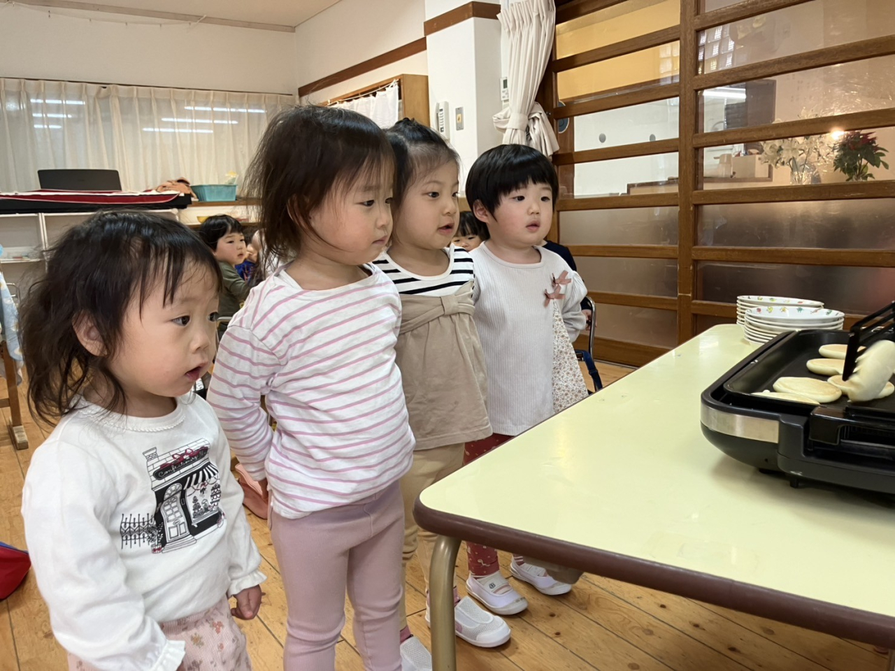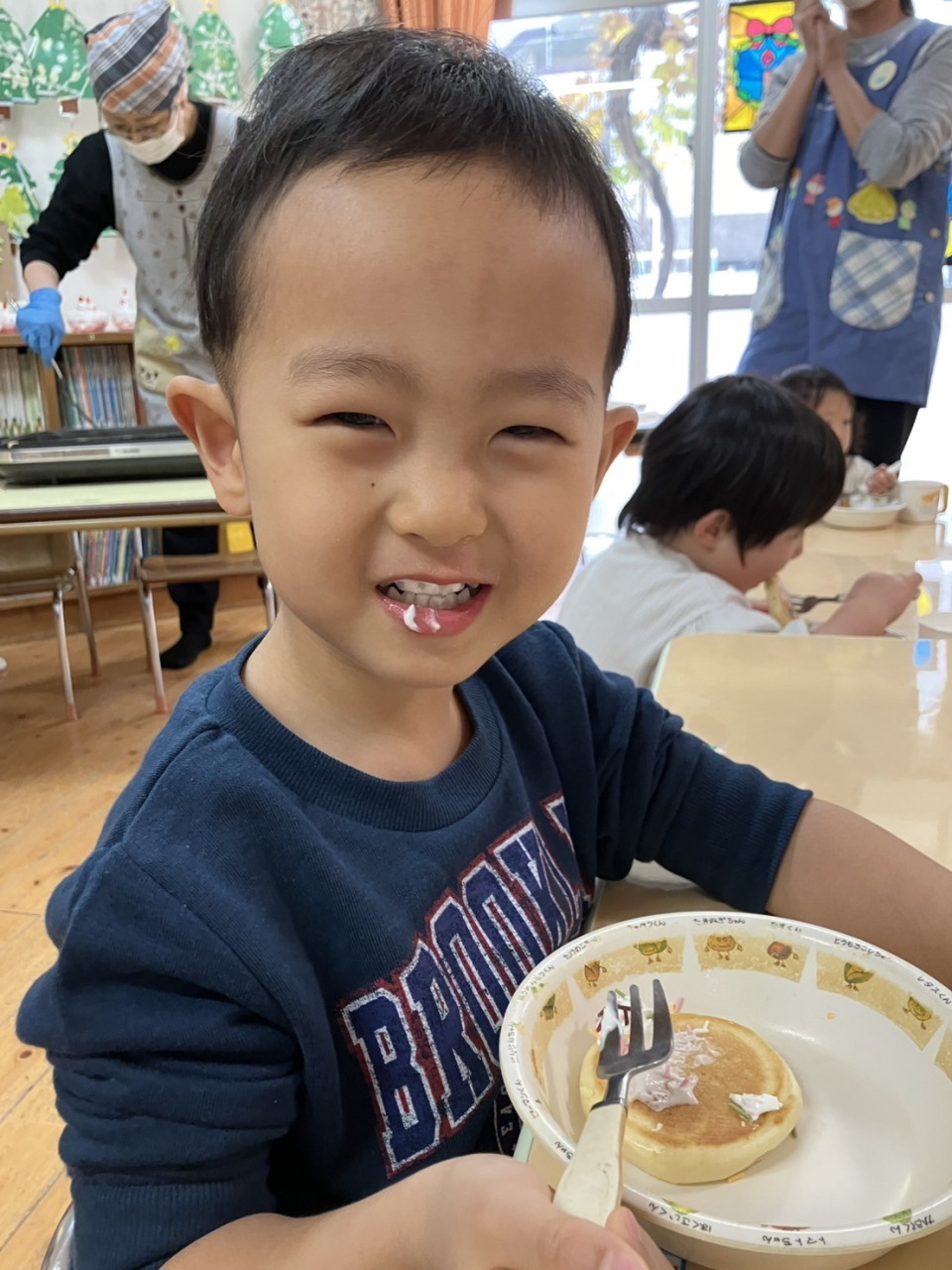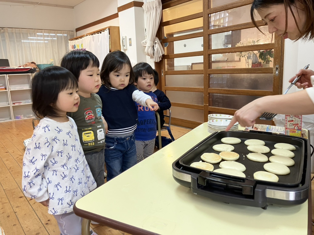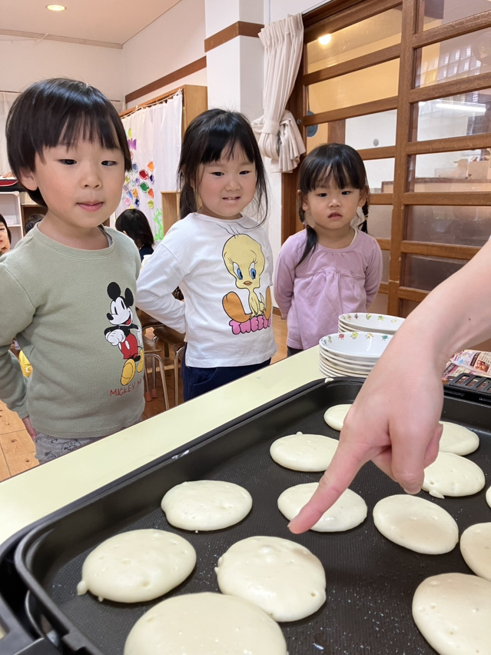調理の先生も一緒にみんなでホットケーキを作って食べたよ★