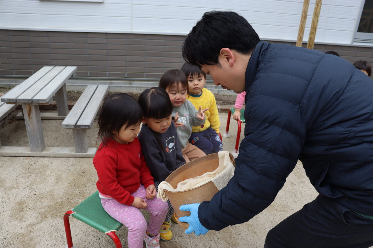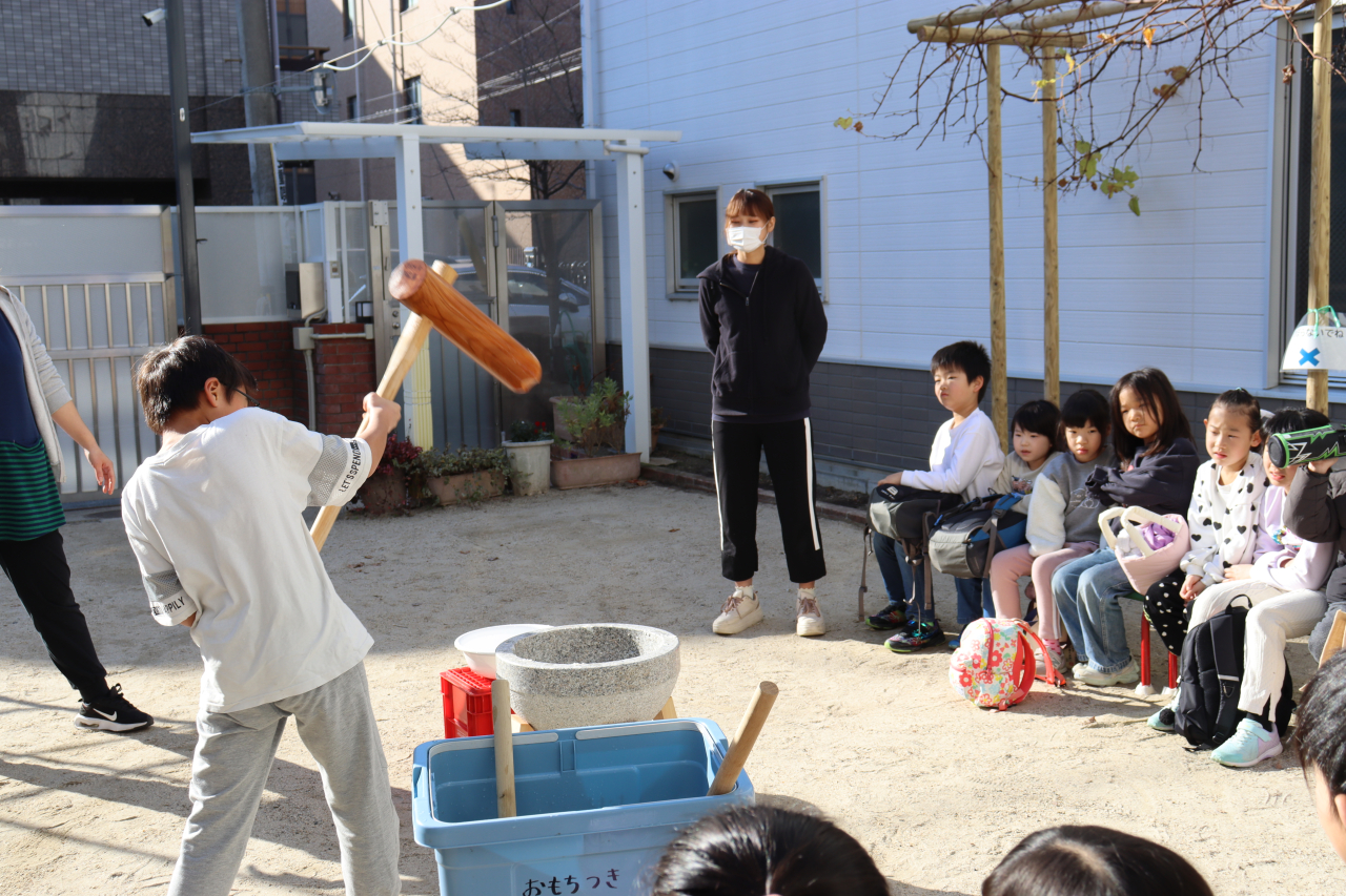 大地フロア(幼児)の子どもたちを中心におもちつきの時間を楽しみました☺