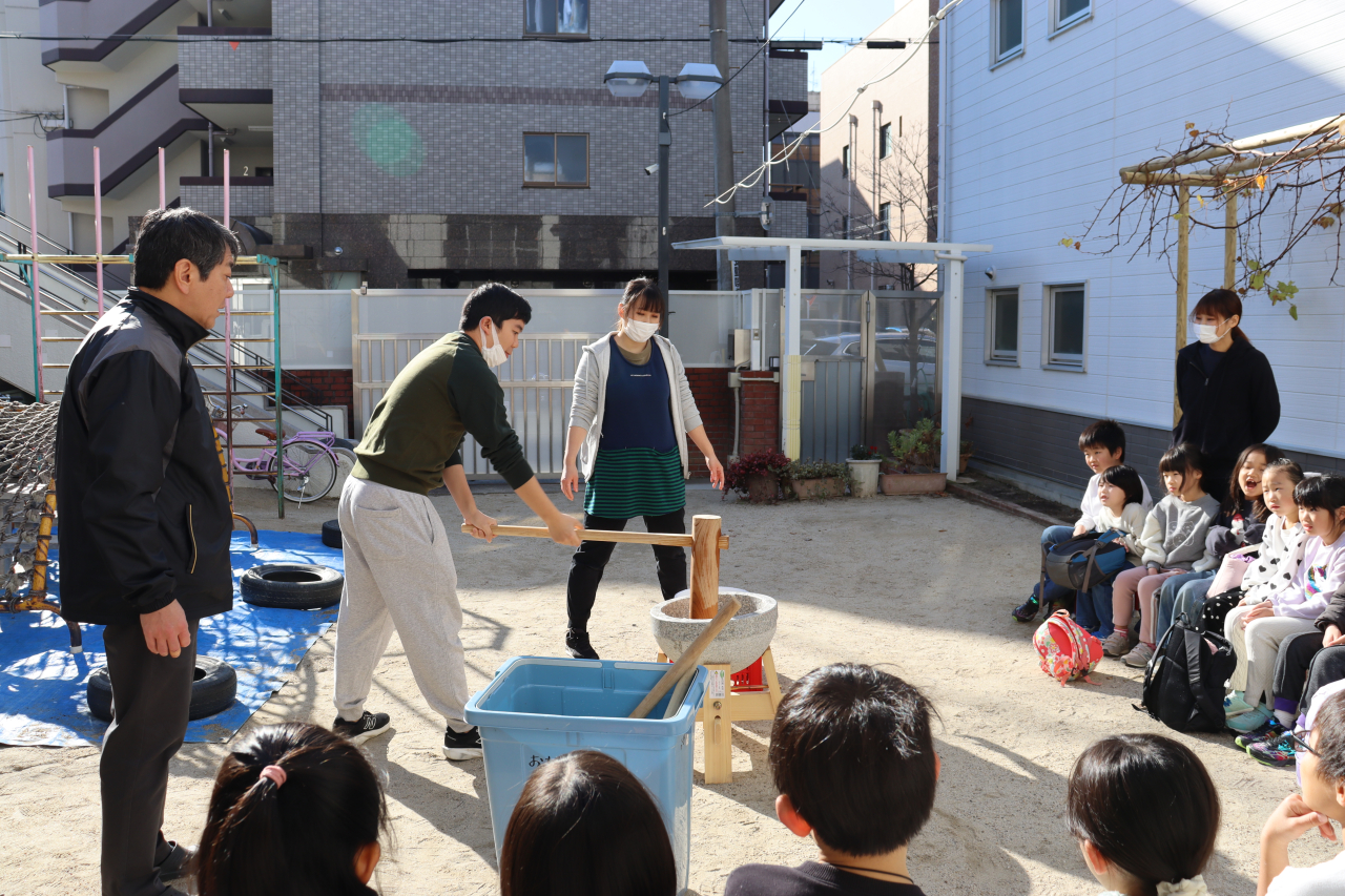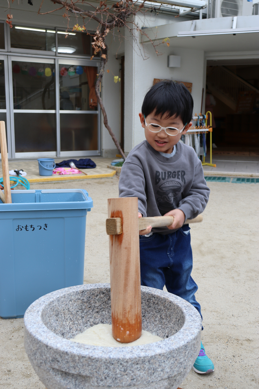 1月は毎年恒例のおもちつきをみんなで楽しみました🎍
