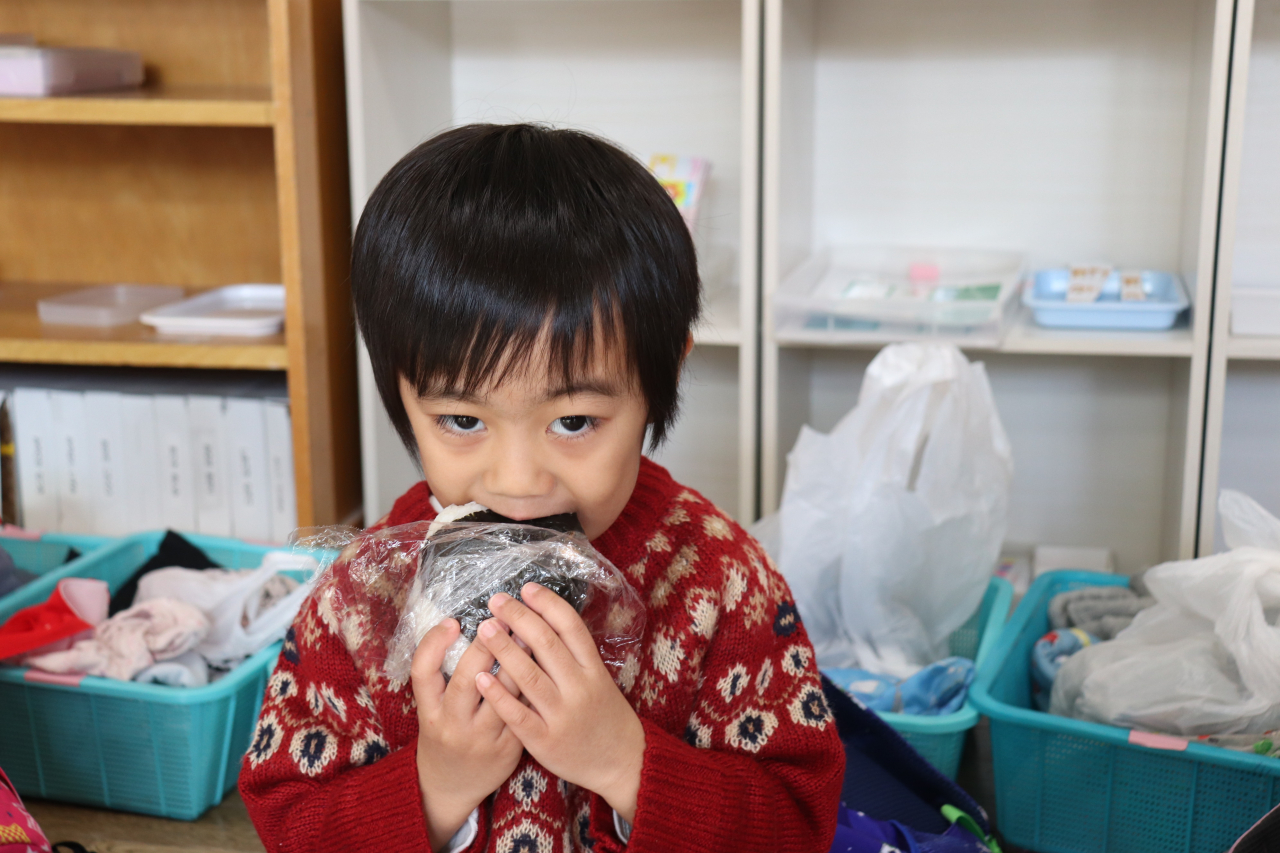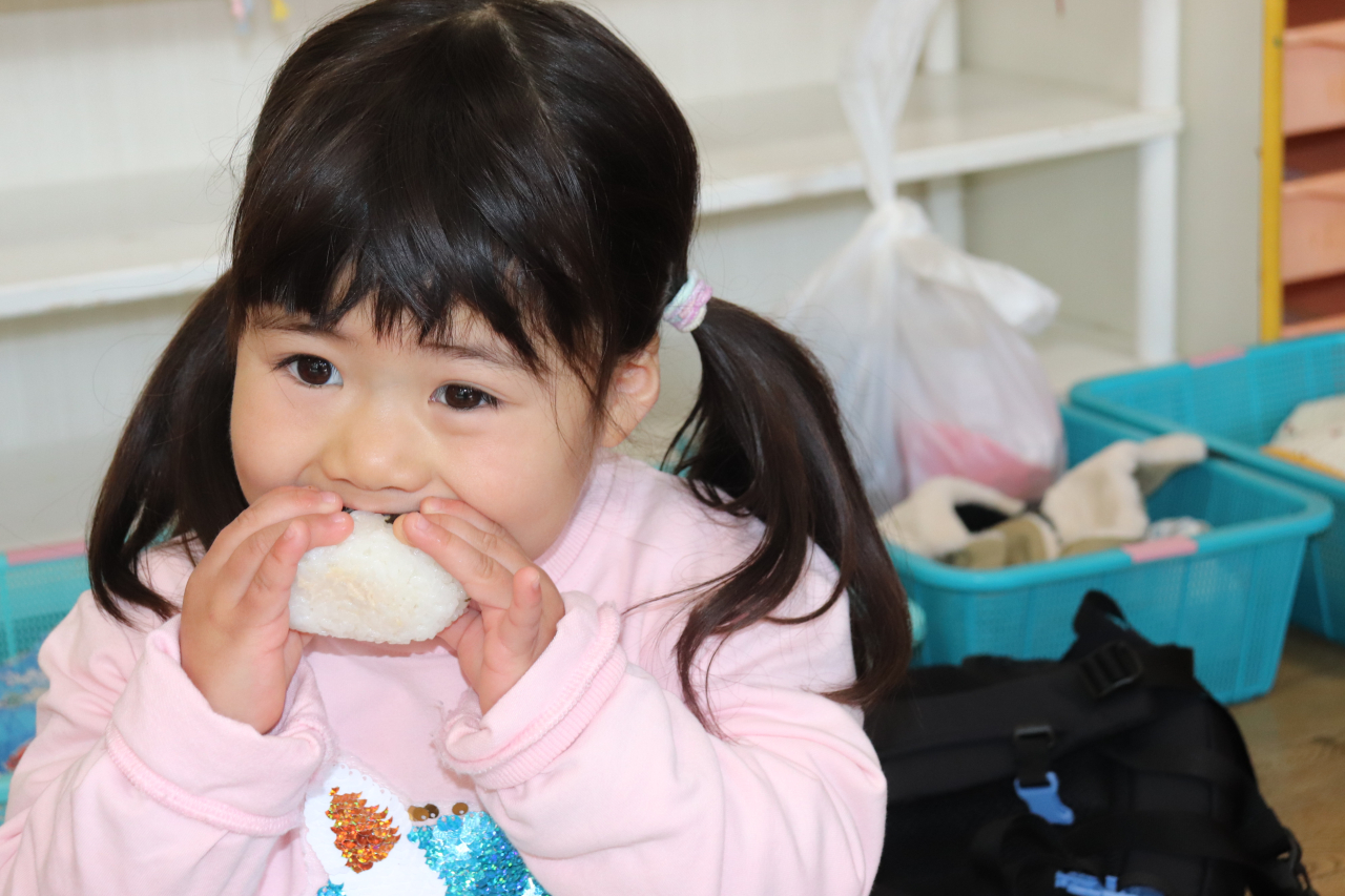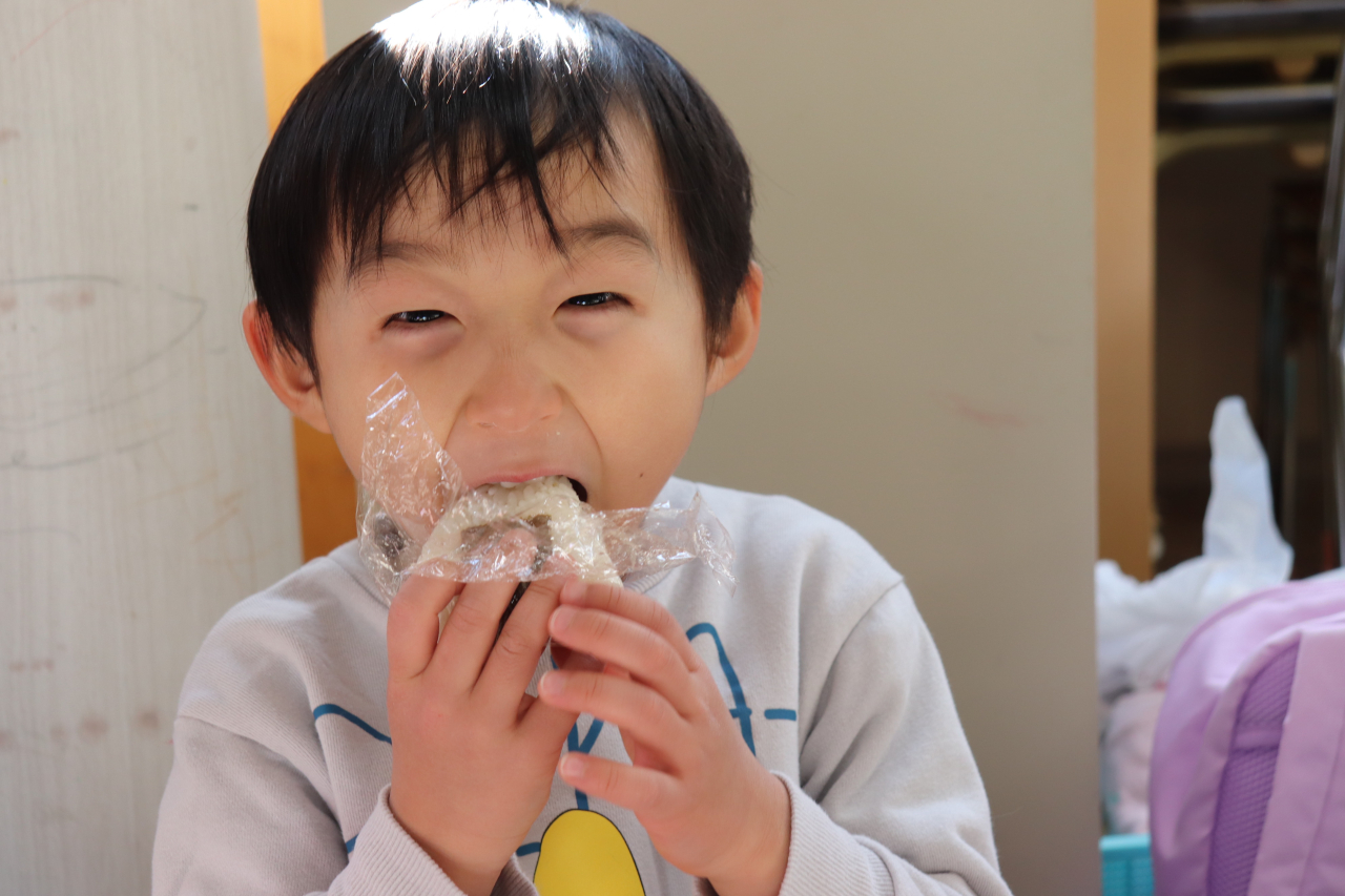 「こんなにおおきいおにぎりもたべられるよ!!」