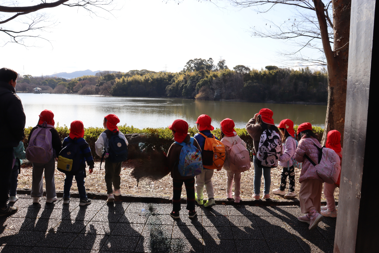 歩いてしばらくすると山田池に到着しました🏞️
