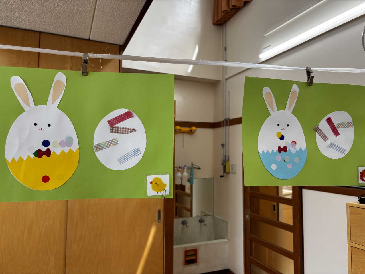 その喜びから、「死は終わりではなく、新しい命の始まり」という希望を祝う日でもあるので桂保育園では、復活、生まれ変わる、始まりを連想させるヒヨコが卵から生まれている“イースターカード”を子どもたちと一緒に製作しています。0・1・2歳児の子どもたちには朝の礼拝の中でそれぞれの年齢に応じた方法でイースター礼拝を守りました。