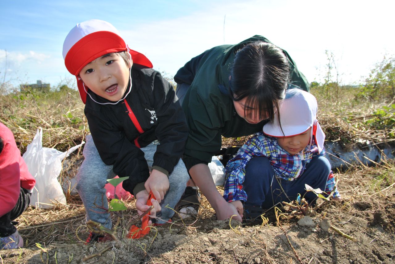 今日は幼児組のこどもたちが楽しみにしていたお芋ほりの日!