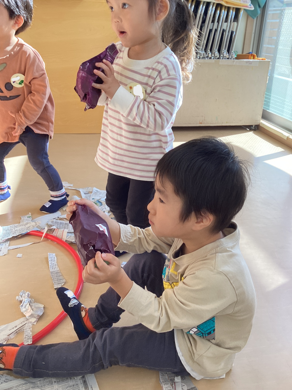 みどりぐみさんも作ったおいもでお芋ほりごっこをしました。