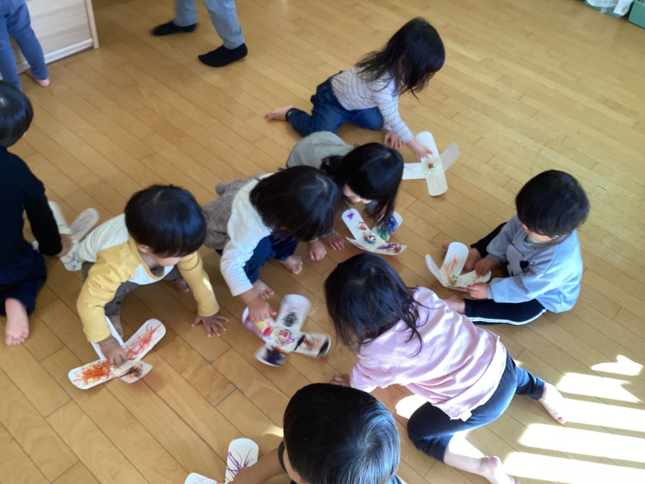 また、子どもたちはそれぞれのこまにお絵描きして、素敵な作品が出来上がりました。