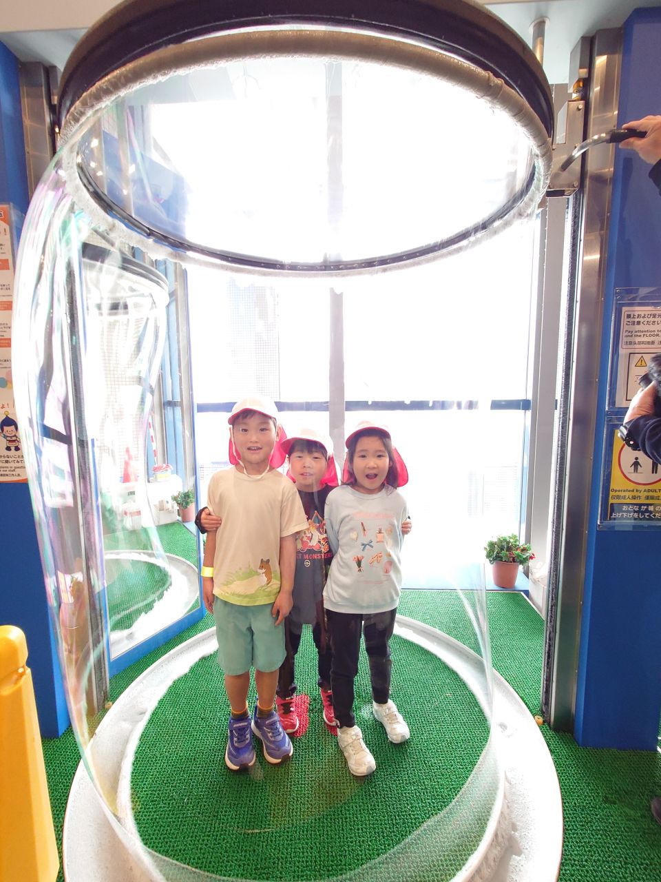 1日目は、キッズプラザ大阪へ向かい、きぐみ皆で初めての電車移動を体験しました。改札を通り抜けたり、乗り換えをしたり…ドキドキしながらも、座席に並んで座り、窓の外の流れる景色を楽しんでいたこどもたちでした。