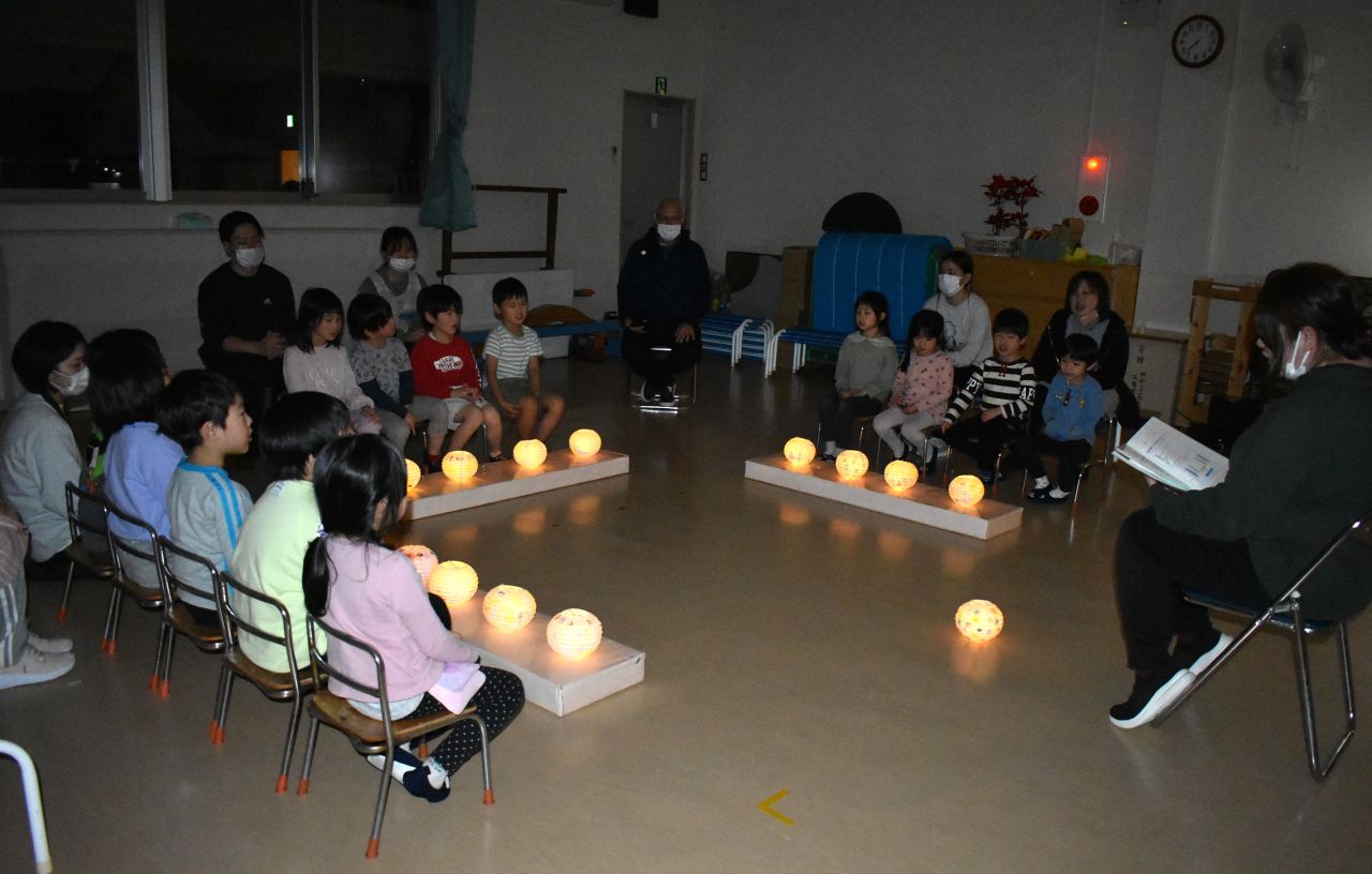 園に帰ったら、おやつで一息ついて、ランプシェードづくり。絵の具で装飾して、それぞれの個性が光る作品が出来上がりました。夜には一つずつ灯りをともしてキャンドルサービスを行い、素敵な雰囲気を味わうことができました。その中でも特に嬉しかったのが、おうちの方からのお手紙のサプライズ★読み終わった後のこどもたちの表情が、ホッとしたような、恥ずかしいような、でもやっぱり嬉しくて最高の笑顔を見せてくれていましたよ。