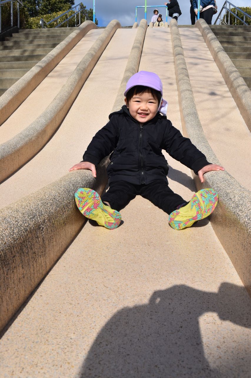 長い滑り台を滑ったり、