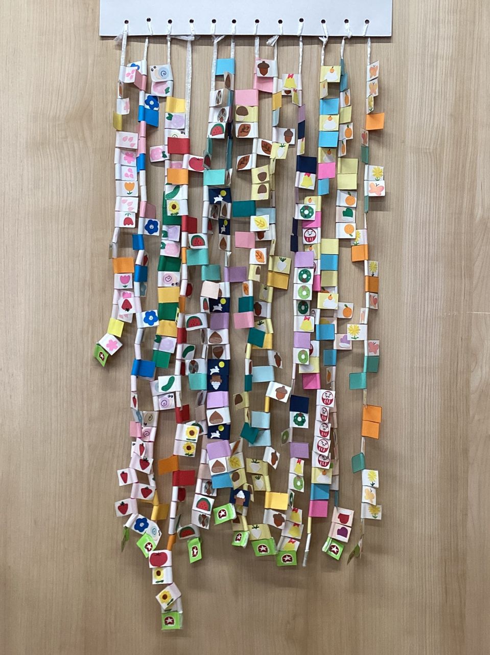 みどりぐみで最後の``いいこといいこと``のひも通しをしました。