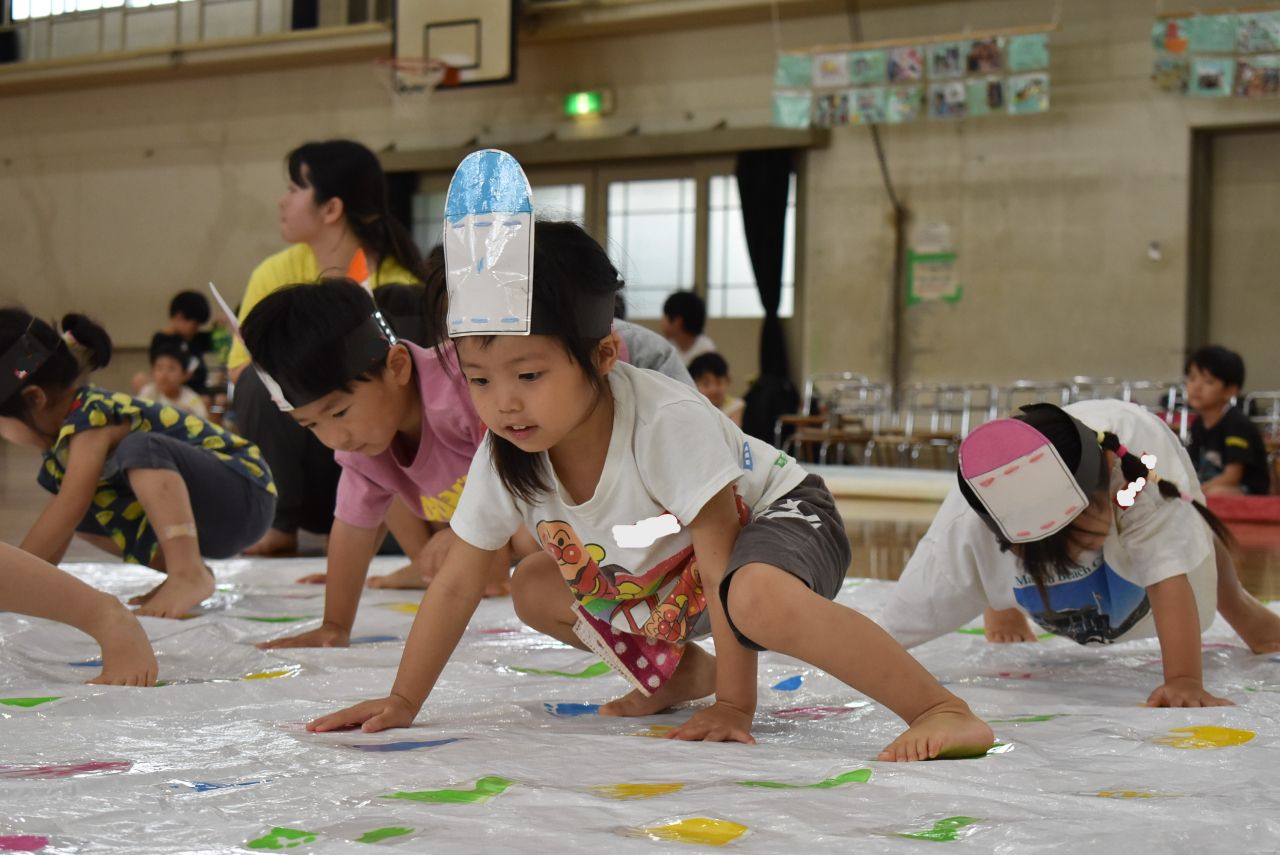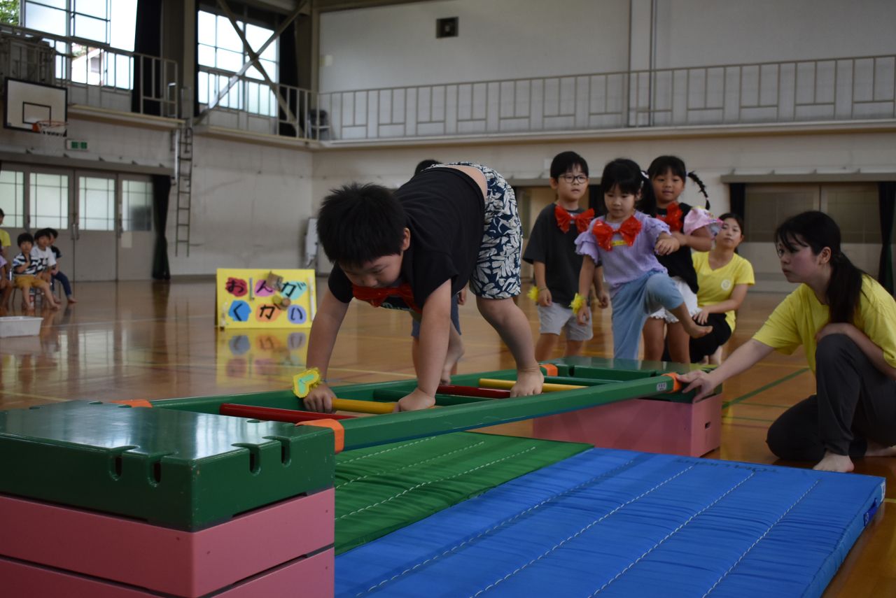 今日は樫原小学校の体育館をお借りして、幼児組うんどうあそびの日を行いました。