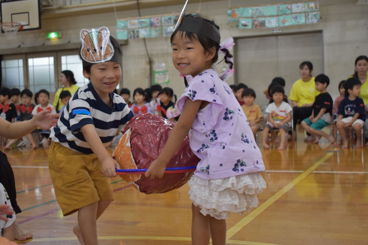 あお組(4歳児)は動物さんになってみんなでカレー作りをするために具材を集めながら楽しみました。